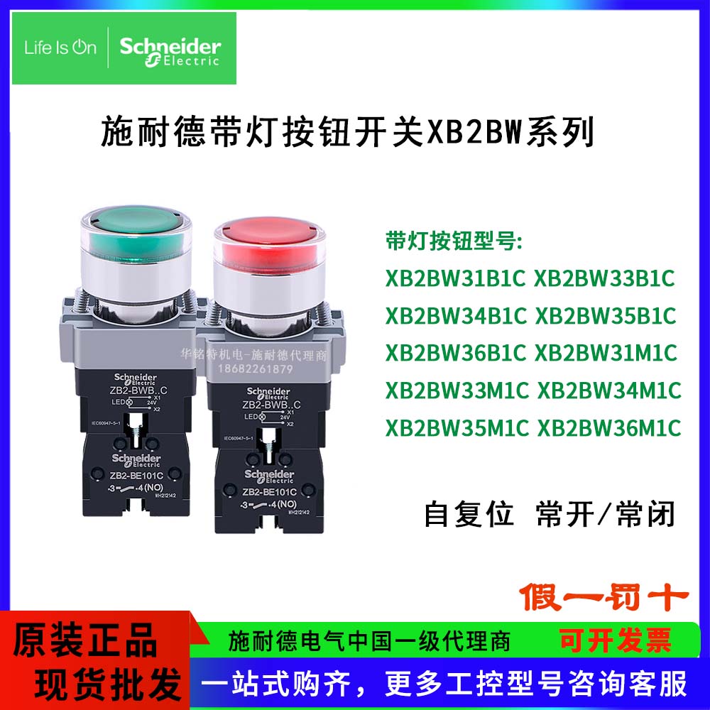 施耐德帶燈按鈕開關(guān)XB2BW33B1C平頭自復(fù)位按鈕指示燈代理商